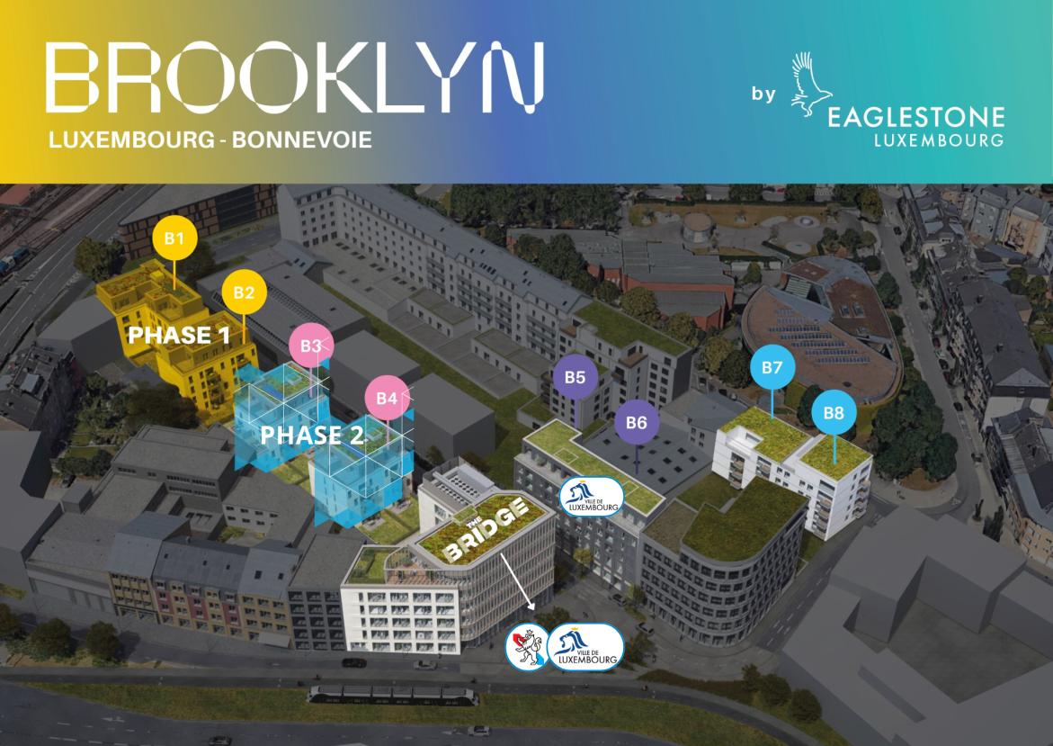 Brooklyn by Eaglestone Luxembourg: le développement d’un futur quartier qui avance sur tous les fronts à Bonnevoie. À Bonnevoie, le quartier Brooklyn développé par Eaglestone franchit coup sur coup plusieurs étapes décisives. Alors que la première phase résidentielle vient d’être réceptionnée en avance sur le planning annoncé et que les premiers acquéreurs occupent maintenant leur logement, de nouveaux démarrages du chantier s’ouvrent suite à l’investissement et l’engagement de la Ville de Luxembourg dans le projet.